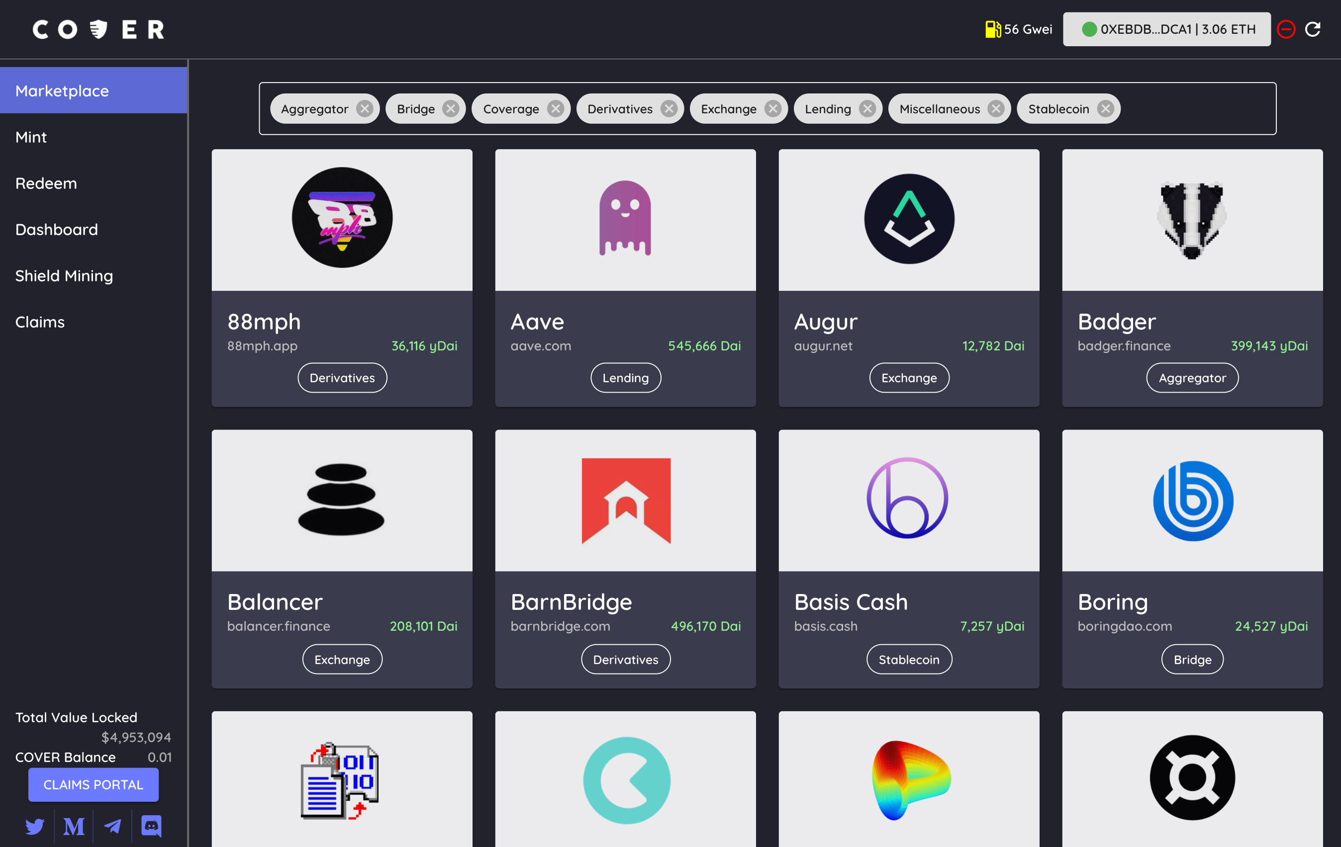 Cover Protocol is a peer-to-peer coverage marketplace that utilizes ERC-20 fungible tokens to allow permisionless and non-KYC coverage. Our model allows users to stake collateral to mint CLAIM tokens(redeemable if an exploit occurs) and NOCLAIM tokens(redeemable if no exploit occurs).