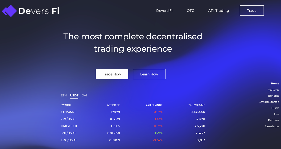 In two years, Ethfinex Trustless successfully scaled to the point where users could expect the same performance as a centralised exchange, which is when we evolved to DeversiFi in August 2019. DeversiFi is the first decentralised exchange which offers traders high-liquidity, speed and choice without compromising control. It is the only exchange where traders can execute large orders directly from the security of their private wallet.