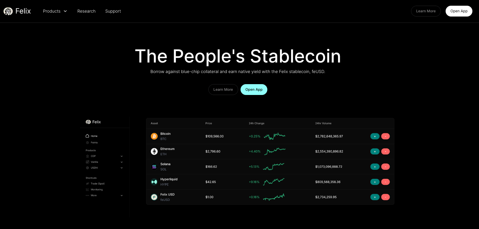 - Overview: feUSD is a native CDP stablecoin by Felix protocol where users can deposit $HYPE, $PURR, and other assets to mint a stablecoin pegged to the US dollar. It aims to provide price stability for trading and DeFi applications.
