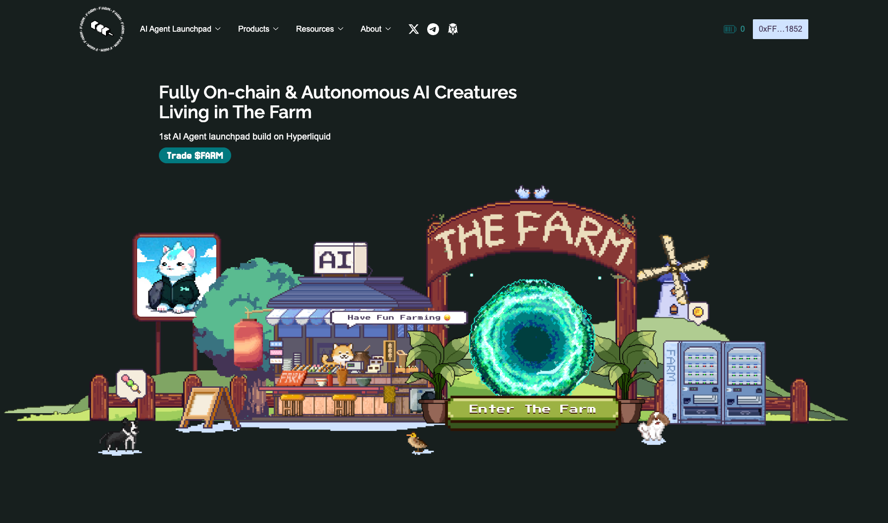 Overview: TheFarm.fun is a pioneering AI-powered gaming platform on Hyperliquid, launched in 2024, that combines generative AI and blockchain to create a unique on-chain creature generation system. Users can mint pixelated NFT creatures from real animal photos using a proprietary GenAI model, with the top 50 creatures, known as “The Ancestors,” forming the foundation of the ecosystem. The platform has confirmed a $FARM token airdrop, allocating 5% of the total supply to reward creators and voters, with 50% for Ancestors, 30% for other minted creatures, and 20% for voters selecting Ancestors. TheFarm.fun’s roadmap includes simulation gameplay and battle/esports features, aiming to build a comprehensive gaming ecosystem. With strong community engagement and innovative AI integration, it has quickly gained traction, offering a novel blend of creativity and gamification.
