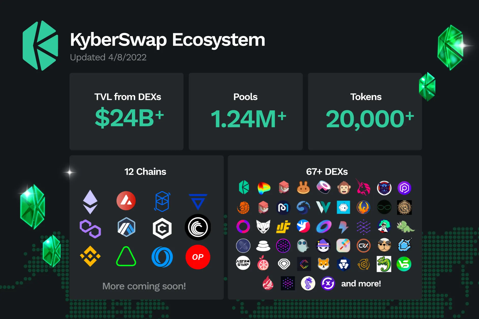 - KyberSwap is the only DEX Aggregator to be present on 12 EVM chains.