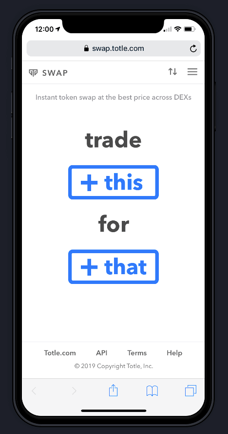 We have some big announcements in the coming months focused on making building in DeFi and using crypto as easy as humanly possible. To demonstrate the power of our upcoming updates, we’ve even given a sneak peek into Totle Swap, a tool which will be launching at the same time.